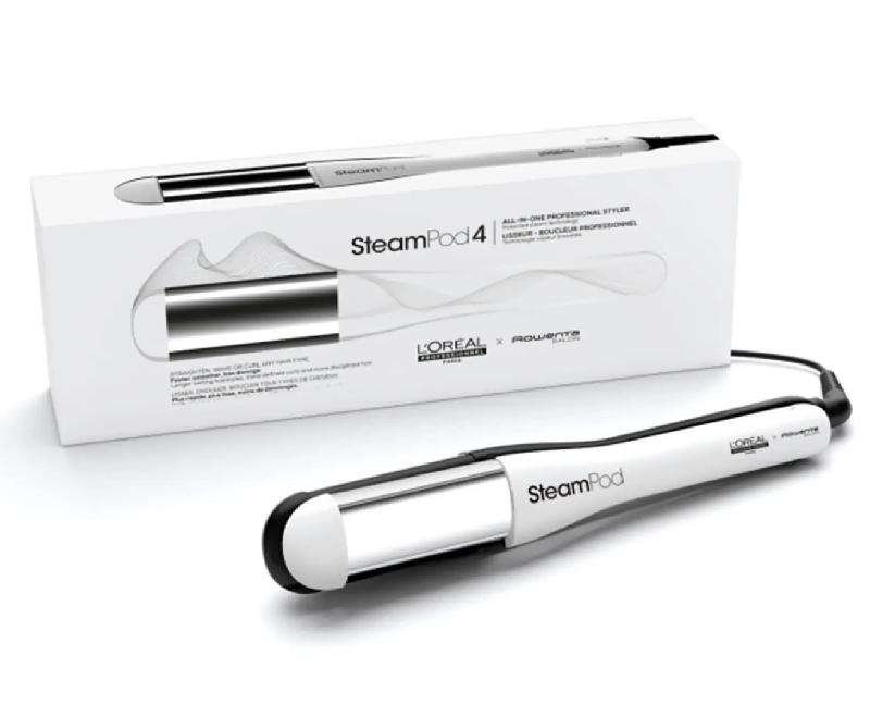 Disponible dans la boutiqueSteampod 4.0 Plaques flottantes Revêtement en céramique Réservoir d’eau sur le Steampod Débit de vapeur 0,8g/min 3 peignes de lissage Plaques chauffantes externes Trousse Thermorésistante